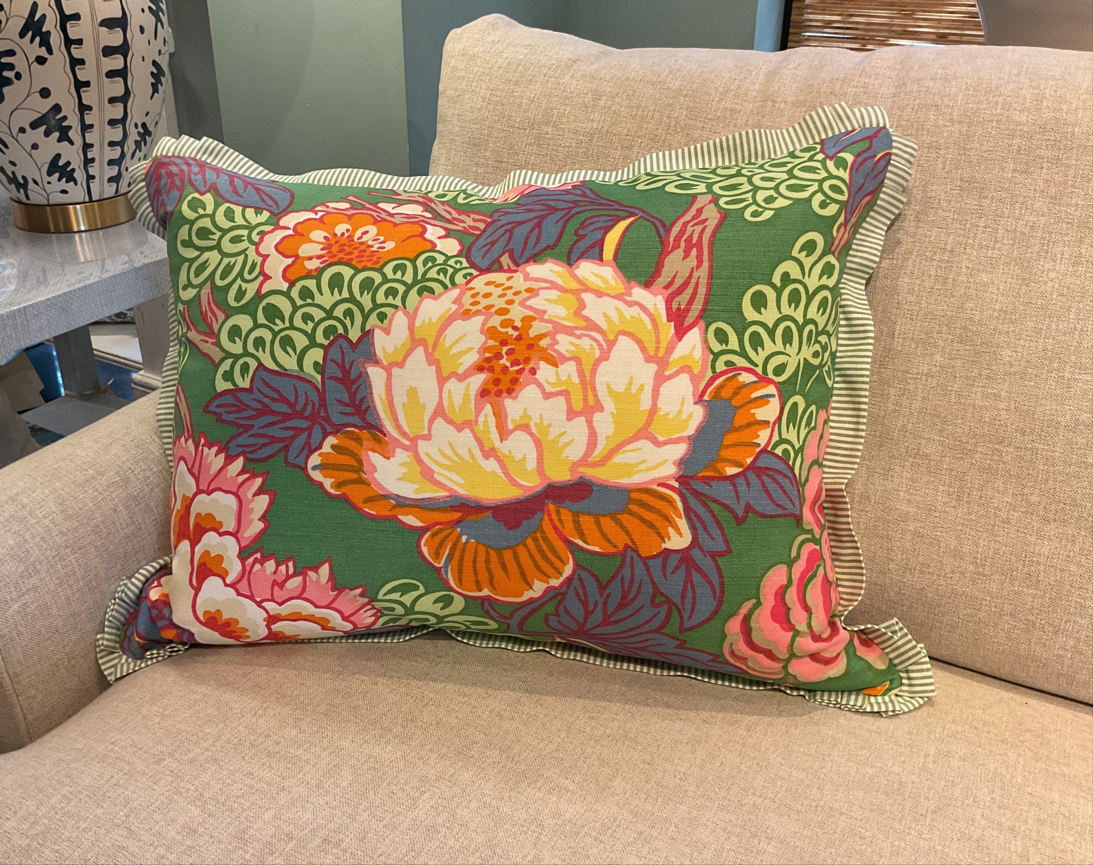 Honshu Green w/ Striped Pleated Corners