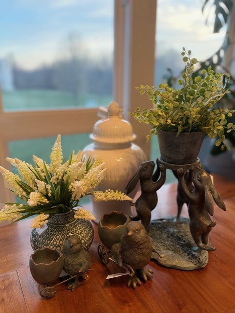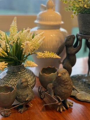Assorted 6 Inch Green & Copper Resin Chicks w/Egg Carts (2 Styles)