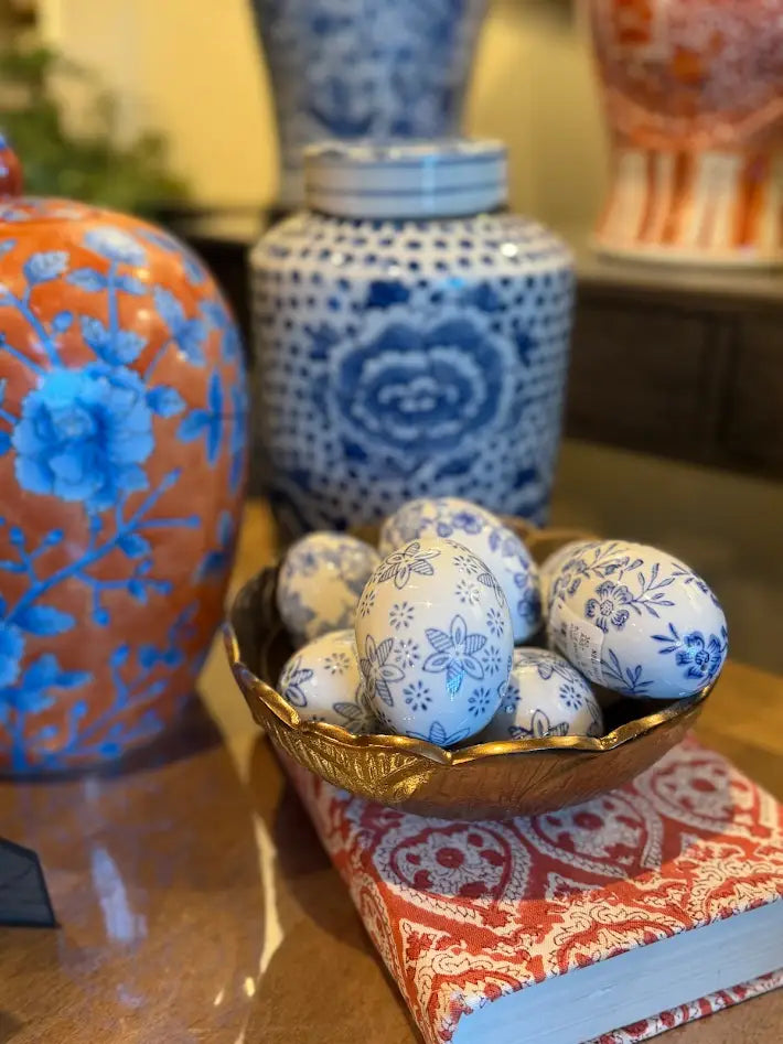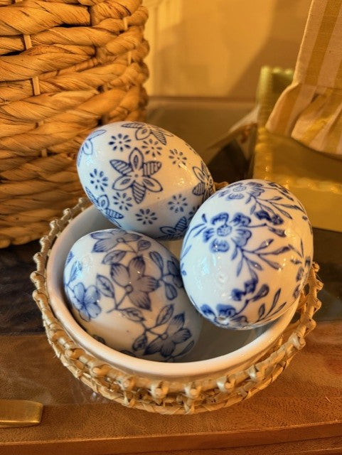 Blue White Floral Eggs Asst