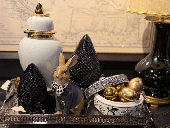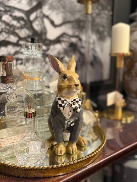 Resin Sitting Bunny with Harlequin Bow Tie
