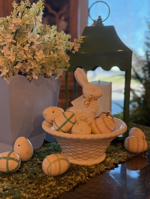 9.5 Inch White Dolomite Bunny In Basket Bowl